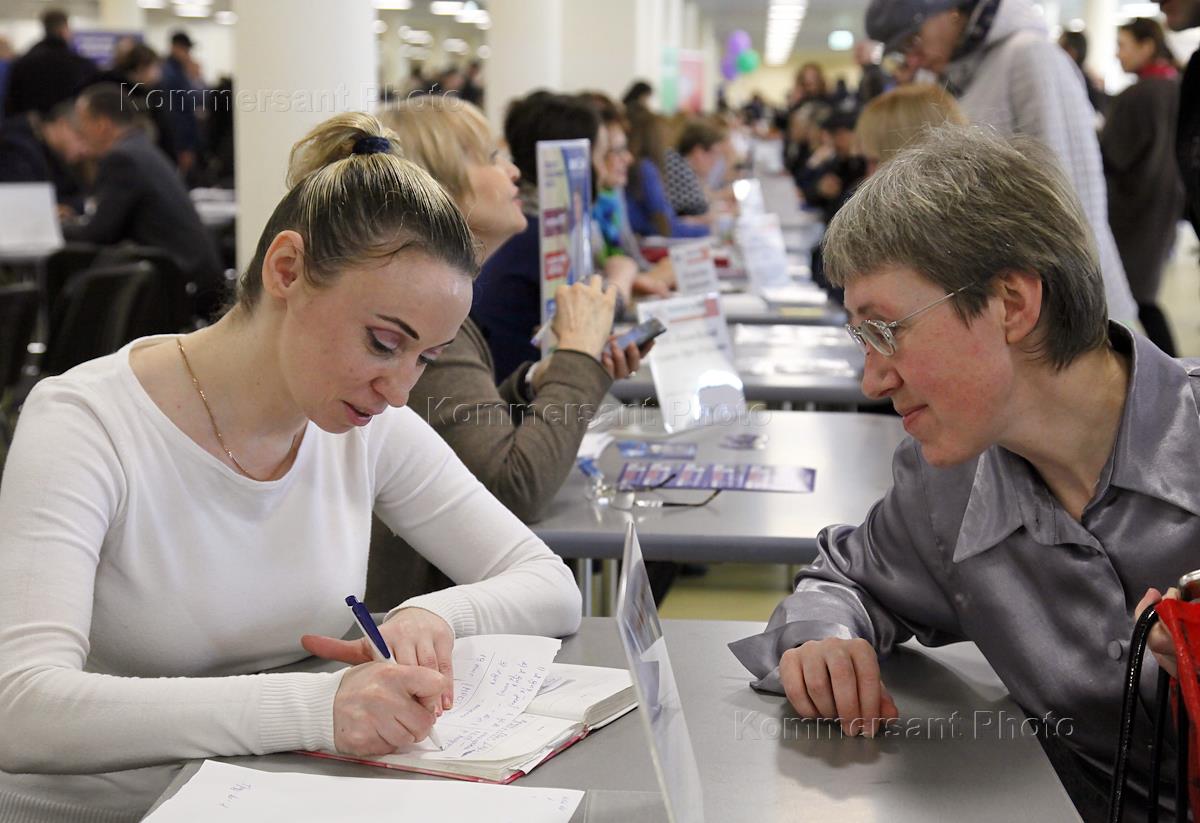 Ярмарка вакансий прошла в центральном выставочном комплексе "Экспоцентр". Ярмарку провел Центр занятости города Москвы.