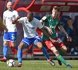 РОСГОССТРАХ - Чемпионат России по футболу 2017/2018. 26-й тур. Матч между командами "Динамо" (Москва) - "Локомотив" (Москва) прошел на стадионе "Арена Химки". Игрок команды "Локомотив" Джефферсон Фарфан(слева) во время матча.