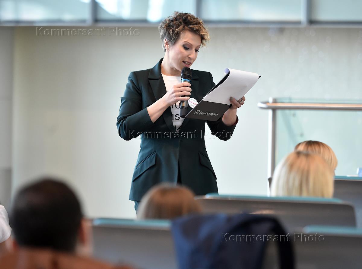 Всероссийская акция "Тотальный диктант" прошла в зоне прилета аэропорта "Домодедово". Текст читала телеведущая Яна Чурикова. Телеведущая, генеральный директор телеканала MTV Россия Яна Чурикова во время диктанта.
