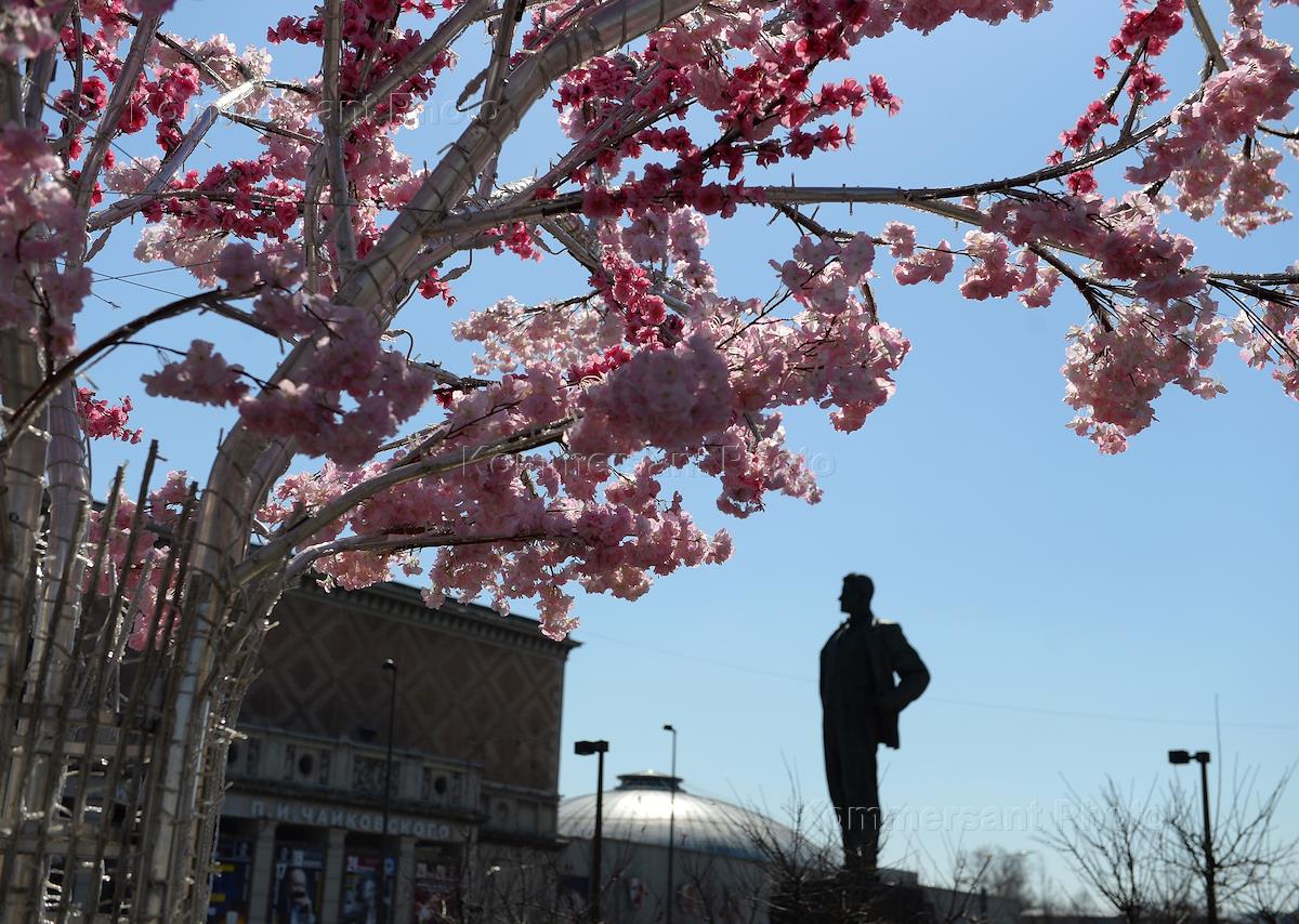 Виды Москвы во время фестиваля "Пасхальный дар". Памятник поэту Владимиру Маяковскому на Триумфальной площади.