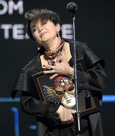 XXIV церемония вручения российской национальной театральной премии "Золотая Маска" прошла на новой сцене Большого театра. Лауреат российской национальной театральной премии "Золотая Маска" в номинации "Работа художника по костюмам" Елена Соловьева во время церемонии.