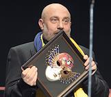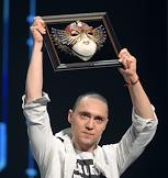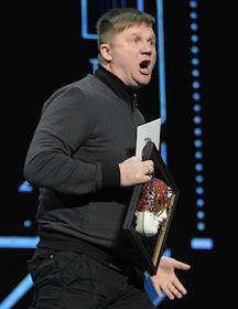 XXIV церемония вручения российской национальной театральной премии "Золотая Маска" прошла на новой сцене Большого театра. Лауреат российской национальной театральной премии "Золотая Маска" в номинации "Куклы\Работа режиссера", режиссер Владимир Бирюков ("Попугай и веники", театр "Кукольный дом", Пенза) во время церемонии.