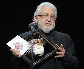 XXIV церемония вручения российской национальной театральной премии "Золотая Маска" прошла на новой сцене Государственного академического Большого театра (ГАБТ). Режиссер Лев Додин, получивший приз в номинации "Драма/спектакль большой формы" за спектакль "Страх Любовь Отчаяние" Малого драматического театра – Театра Европы, во время церемонии.