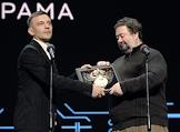 XXIV церемония вручения российской национальной театральной премии "Золотая Маска" прошла на новой сцене Большого театра. Художник Павел Каплевич (справа), получивший приз в номинации "Опера/работа режиссера" вместо Кирилла Серебренникова за спектакль "Чаадский" театра "Геликон-опера", во время церемонии.