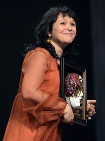 XXIV церемония вручения российской национальной театральной премии "Золотая Маска" прошла на новой сцене Большого театра. Лауреат российской национальной театральной премии "Золотая Маска" в номинации "Работа художника по костюмам" Елена Соловьева во время церемонии.