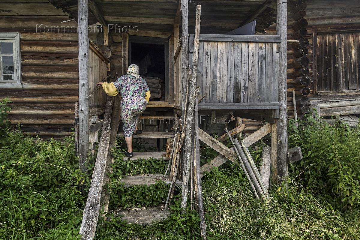 Жанровая фотография. Сельская жительница на крыльце своего дома.