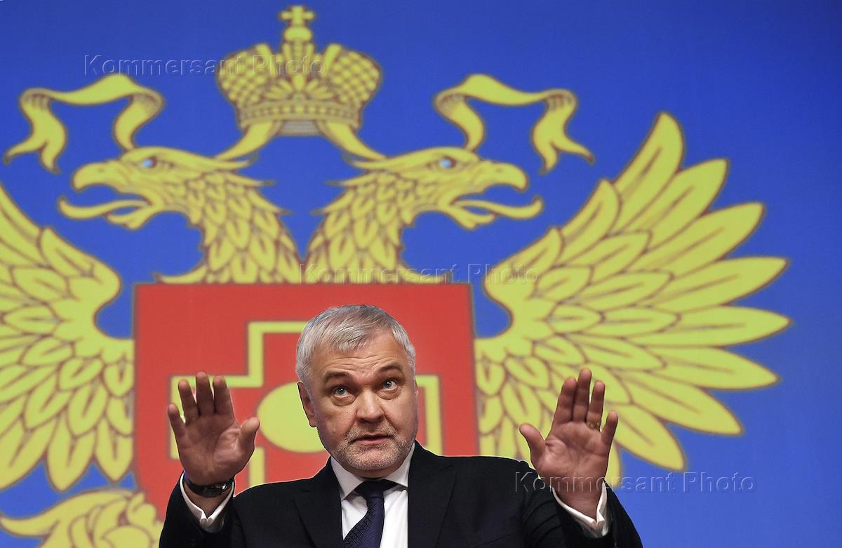 Расширенное заседание коллегии Федерального медико-биологического агентства с повесткой "Итоги работы ФМБА России в 2017 году и задачи на 2018-2019 годы" прошло в здании Федерального медико-биологического агентства (ФМБА). Руководитель Федеральной службы по надзору в сфере здравоохранения Михаил Мурашко во время заседания.