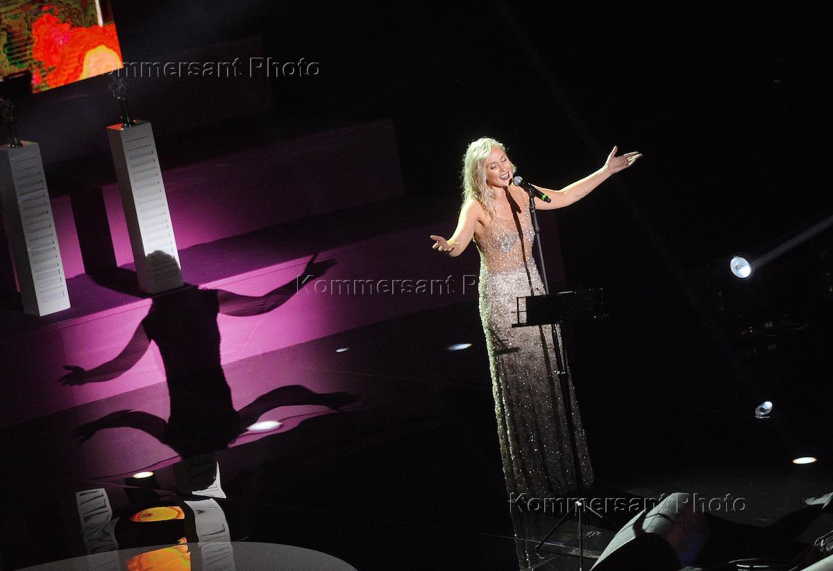 40-й Московский международный кинофестиваль (ММКФ). Певица Ксана Сергиенко во время выступления на церемонии открытия в Московском театре мюзикла.