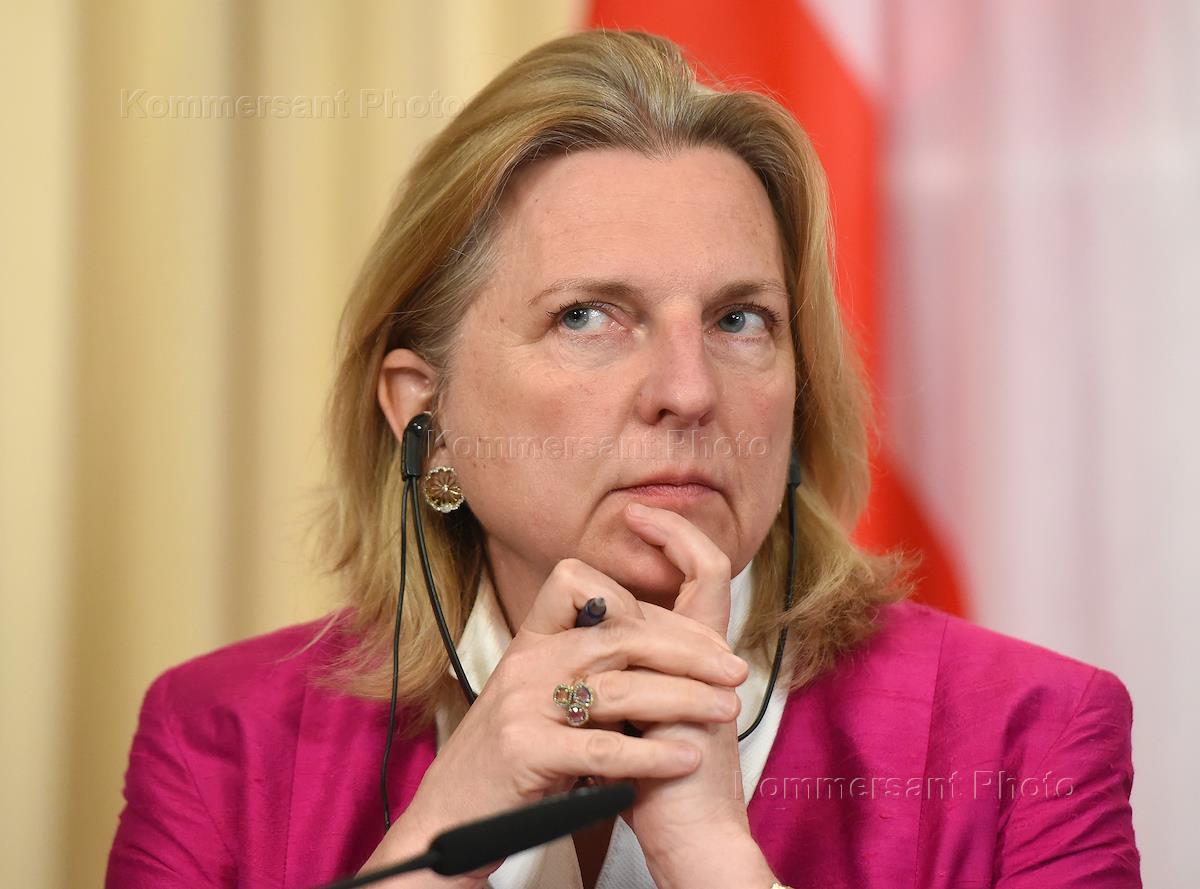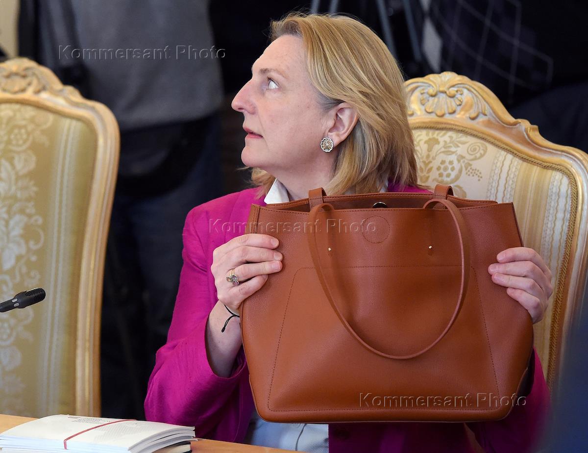 Министр иностранных дел Австрийской Республики Карин Кнайсль во время встречи с министром иностранных дел России Сергеем Лавровым в Доме приемов МИД России.