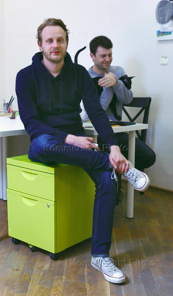 Соучредители и совладельцы издательского дома Look At Media (LAM), создатели молодёжного веб-проекта Look At Me: генеральный директор (CEO) Алексей Аметов (слева) и издатель Василий Эсманов (спарва) в офисе своей компании.