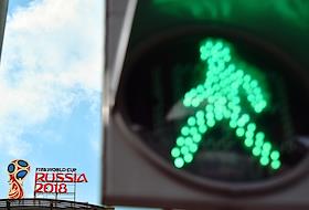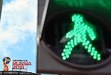 Жанровая фотография. Светофор и логотип Чемпионата мира по футболу FIFA 2018.