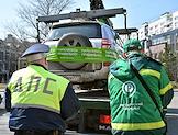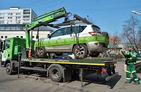 Жанровая фотография. Сотрудники службы "Московский паркинг" эвакуируют направильно припаркованный автомобиль.