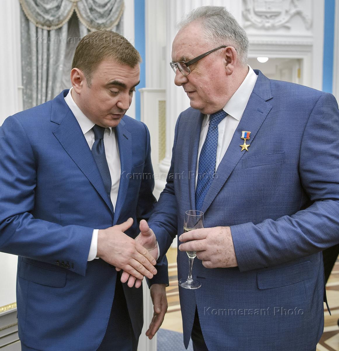 Президент России Владимир Путин на церемонии вручения медалей "Герой Труда Российской Федерации" в Кремле. Губернатор Тульской области Алексей Дюмин перед началом церемонией.