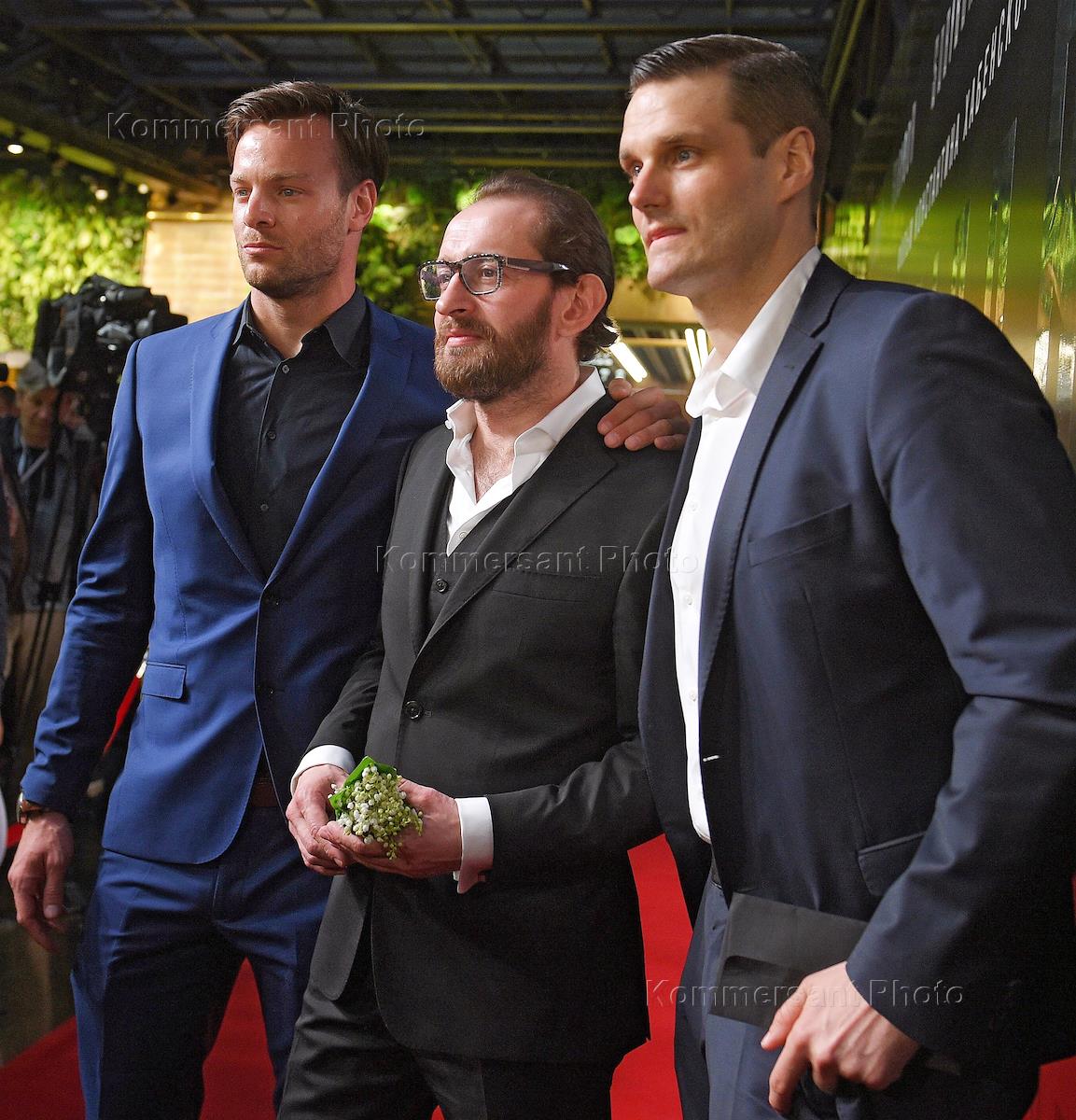 Премьера фильма режиссера Константина Хабенского "Собибор" прошла в кинотеатре "Москва". Слева направо: актер Вольфганг Черны, актер, режиссер Константин Хабенский и актер Филипп Рейнхард на премьере.