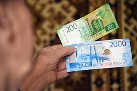 Жанровая фотография. Новые купюры в 200 и 2000 рублей в руке.