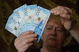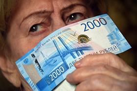 Жанровая фотография. Новыая купюра в 2000 рублей в руке женщины.