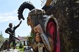 Жанровая фотография. Скульптуры казака и казачки с "хлебом-солью".