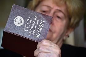 Жанровая фотография. Женщина держит в руке заграничный паспорт.