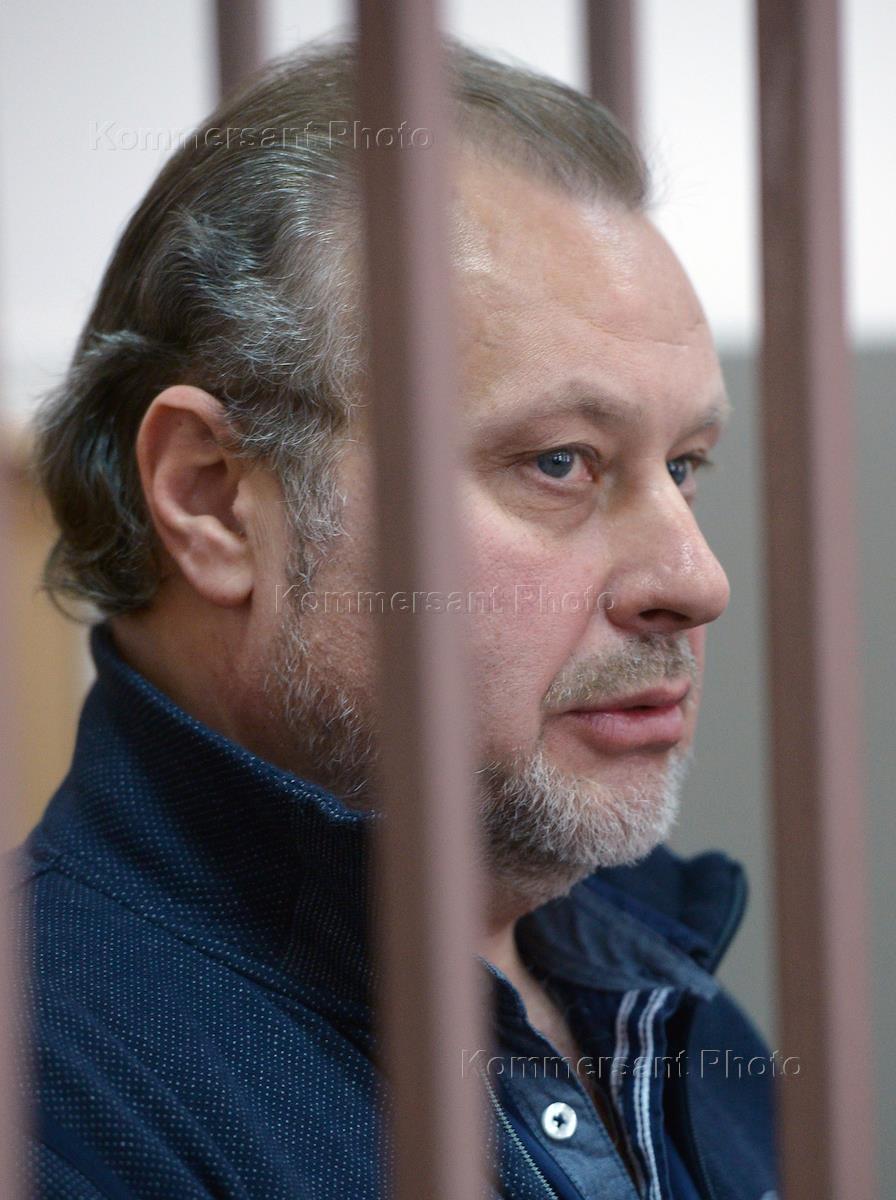 Быший заместитель главы Федеральной службы исполнения наказаний Олег Коршунов, обвиняемый в хищении и растрате в особо крупном размере, во время заседания Басманного районного суда.