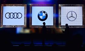 Церемония вручения ежегодной национальной премии "Автомобиль года в России 2018" в театре Московского Дворца Молодежи. Слева направо: главный редактор журнала "Автопарк" Михаил Ожерельев, глава марки "Volkswagen Коммерческие автомобили" Михаил Семенихин и генеральный директор "AVIS Россия" Алехандро Кареньо на церемонии.