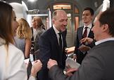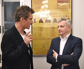 Церемония награждения лауреатов премии "Инновация 2018" прошла в Театре Наций. Генеральный директор, председатель правления УК "Уралсиб" Андрей Успенский (справа) перед началом церемонии.