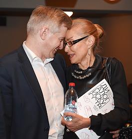 Церемония награждения лауреатов премии "Инновация 2018" прошла в Театре Наций. Руководитель компании "Уникум" Борис Белоцерковский (слева) и журналист Алена Долецкая (справа) во время церемонии.