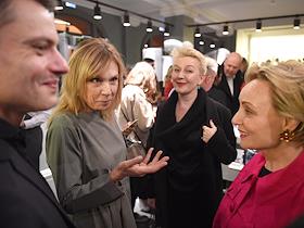 Церемония награждения лауреатов премии "Инновация 2018" прошла в Театре Наций. Журналист Алена Долецкая (вторая слева) и директор фонда V-A-C Тереза Мавика (справа) во время церемонии.