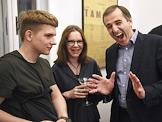 Церемония награждения лауреатов премии "Инновация 2018" прошла в Театре Наций. Руководитель департамента культуры города Москвы Александр Кибовский (справа) и директор фонда V-A-C Тереза Мавика (в центре) во время церемонии.
