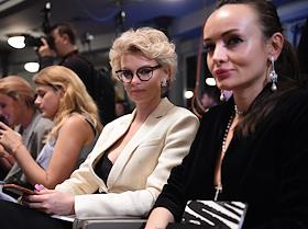 Церемония награждения лауреатов премии "Инновация 2018" прошла в Театре Наций. Журналист Евгения Милова (слева) перед началом церемонии.