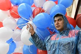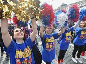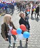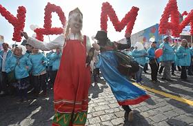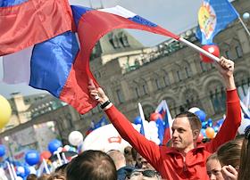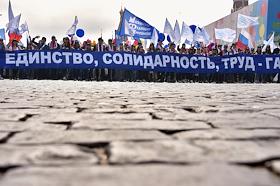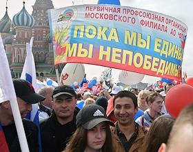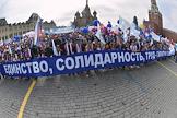 День международной солидарности трудящихся. Участники традиционного первомайского шествия профсоюзов на Красной площади.