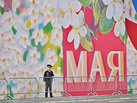 День международной солидарности трудящихся. Сотрудник полиции во время традиционного первомайского шествия профсоюзов на Красной площади.