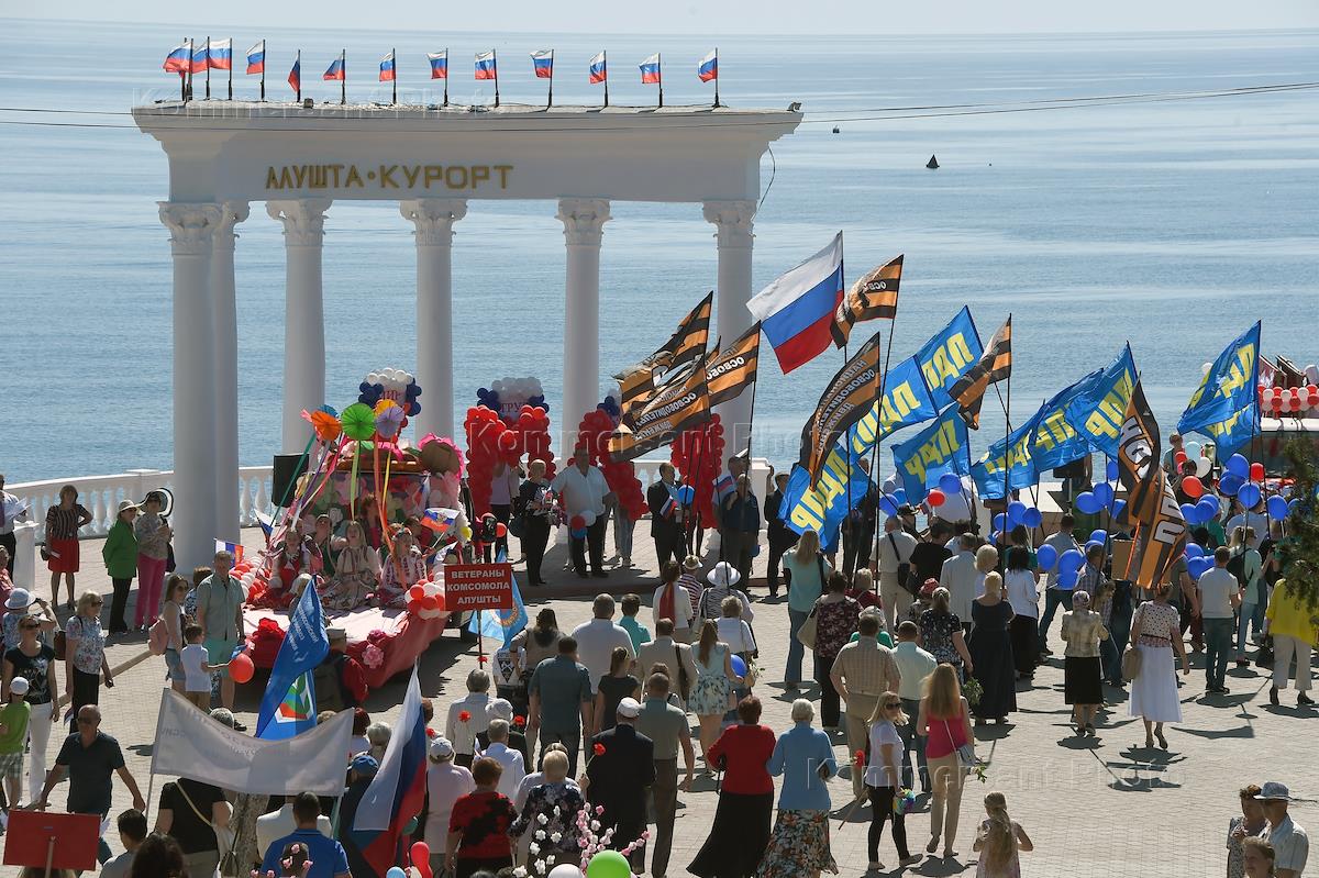 Участники шествия, посвященного Международному Дню солидарности трудящихся.