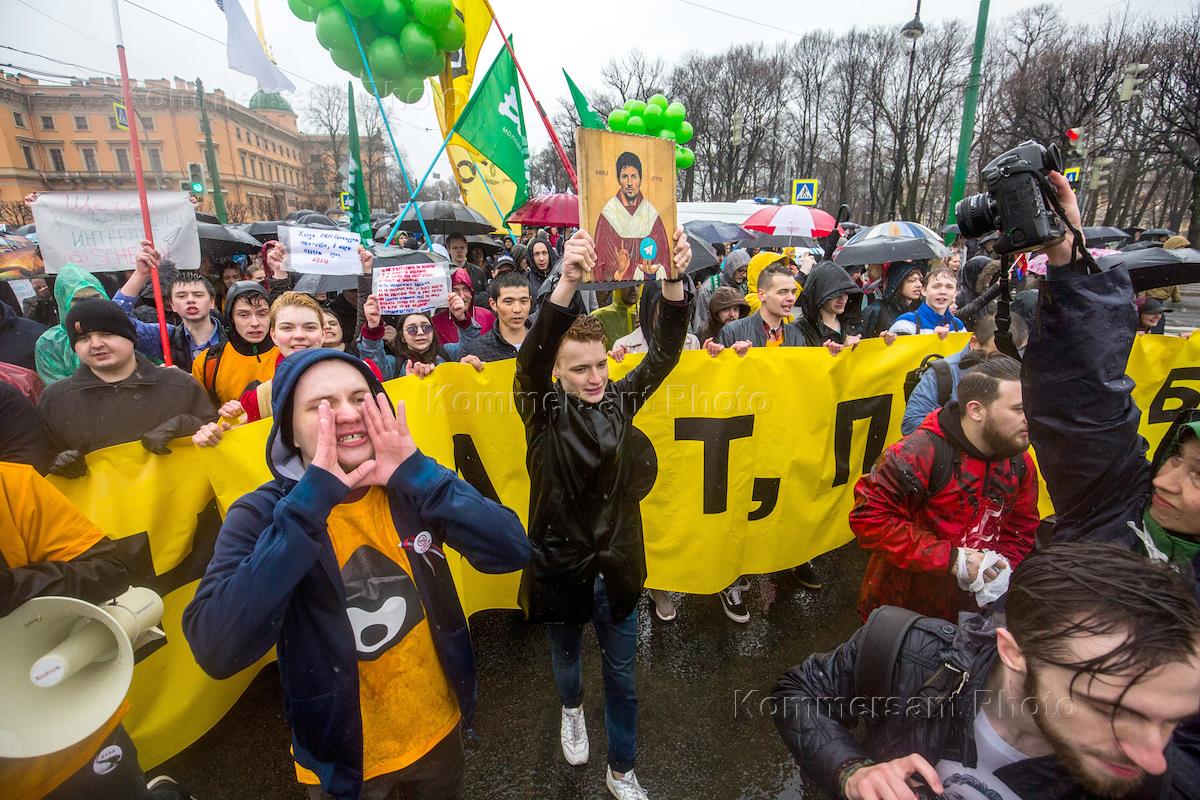 Участники первомайской колонны в защиту мессенджера Telegram "За свободный интернет".
