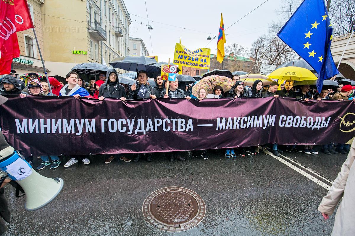 Участники первомайской колонны в защиту мессенджера Telegram "За свободный интернет".