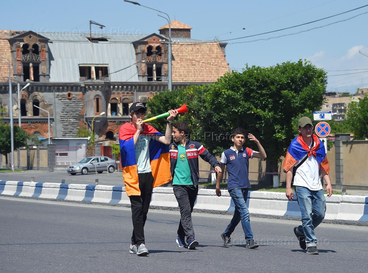 Political situation in Armenia. Supporters of the opposition leader and movement "Elk" Nikol Pashinyan during protests in Yerevan.