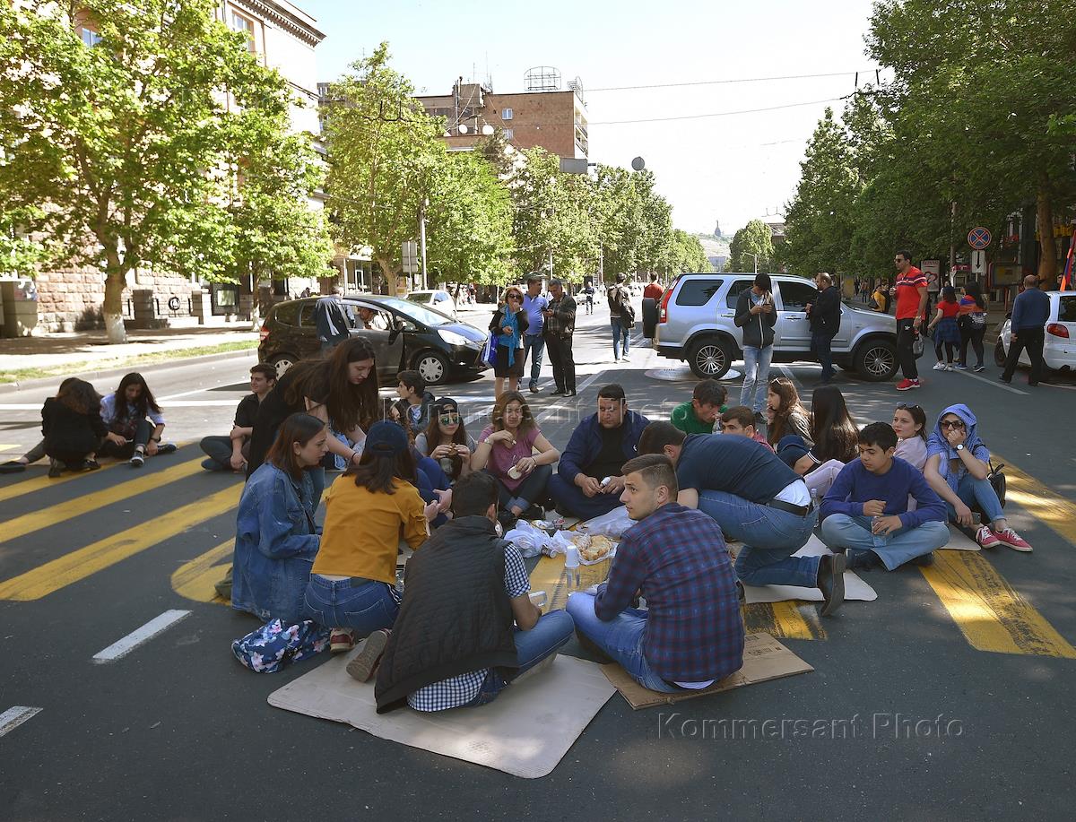 Political situation in Armenia. Supporters of the opposition leader and movement "Elk" Nikol Pashinyan during protests in Yerevan blocked the roads.