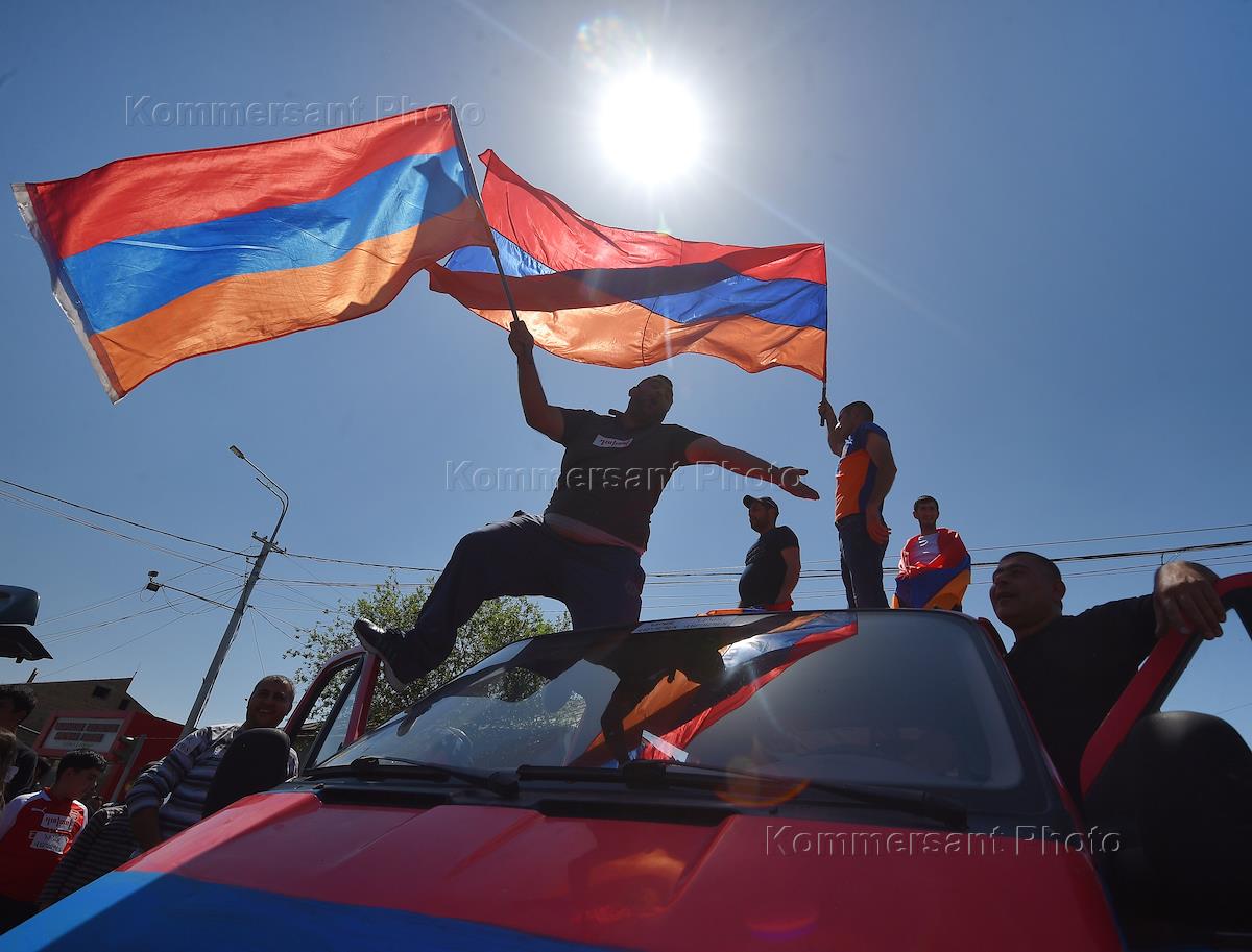 Political situation in Armenia. Supporters of the opposition leader and movement "Elk" Nikol Pashinyan during protests in Yerevan.