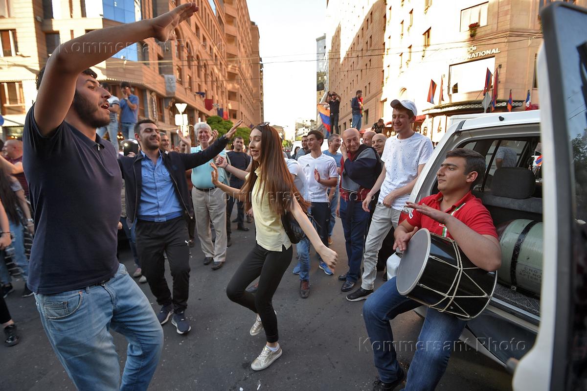 Political situation in Armenia. Supporters of the opposition leader and movement "Elk" Nikol Pashinyan during protests in Yerevan.