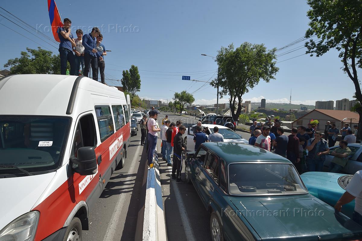 Политическая ситуация в Армении. Сторонники лидера оппозиционного движения "Елк" Никола Пашиняна во время акции протеста в Ереване перекрывают дороги.