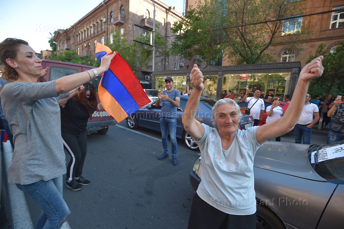 Политическая ситуация в Армении. Сторонники лидера оппозиционного движения "Елк" Никола Пашиняна во время акции протеста в Ереване.