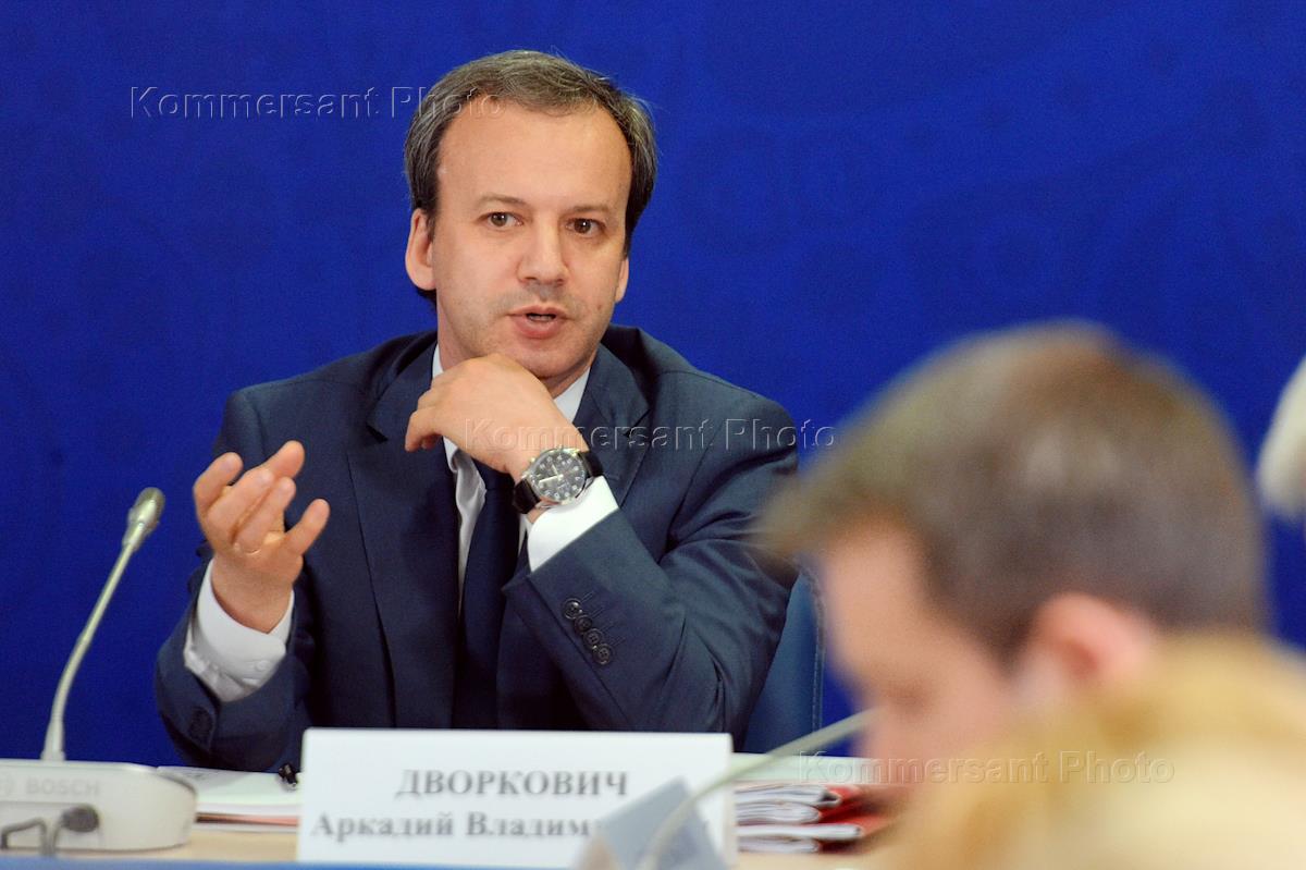 Рабочая поездка президента России Владимира Путина в Сочи. Заседание наблюдательного совета оргкомитета "Россия-2018" прошло на стадионе "Фишт". Заместитель председателя Правительства России Аркадий Дворкович во время заседания.