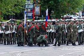 Репетиция Парада Победы. Военные во время подготовки марша.