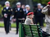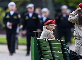 Репетиция Парада Победы. Военные моряки обедают в уличном кафе.
