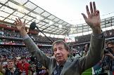 РОСГОССТРАХ Чемпионат России по футболу 2017/2018. 29-й тур. Матч между командами "Локомотив" (Москва) и "Зенит" (Санкт-Петербург) прошел на стадионе "РЖД Арена". Главный тренер команды "Локомотив" Юрий Семин (в центре) с Кубком Чемпионата России по футболу во время церемонии награждения.