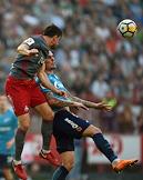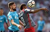 РОСГОССТРАХ Чемпионат России по футболу 2017/2018. 29-й тур. Матч между командами "Локомотив" (Москва) и "Зенит" (Санкт-Петербург) прошел на стадионе "РЖД Арена". Игрок команды "Зенит" Миха Мевля (слева) и игрок команды "Локомотив" Джефферсон Фарфан (справа) во время матча.