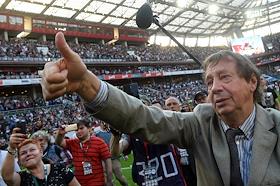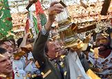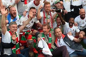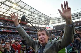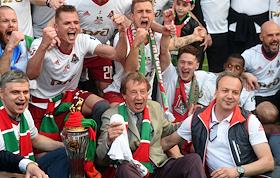 РОСГОССТРАХ Чемпионат России по футболу 2017/2018. 29-й тур. Матч между командами "Локомотив" (Москва) и "Зенит" (Санкт-Петербург) прошел на стадионе "РЖД Арена". Главный тренер команды "Локомотив" Юрий Семин (в центре) с Кубком Чемпионата России по футболу во время церемонии награждения.