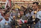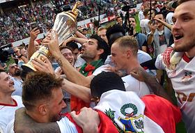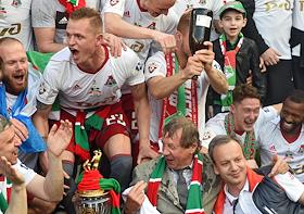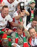РОСГОССТРАХ Чемпионат России по футболу 2017/2018. 29-й тур. Матч между командами "Локомотив" (Москва) и "Зенит" (Санкт-Петербург) прошел на стадионе "РЖД Арена". Игроки команды "Локомотив" с Кубком Чемпионата России по футболу во время церемонии награждения.