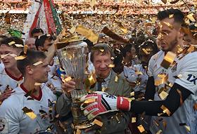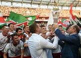 РОСГОССТРАХ Чемпионат России по футболу 2017/2018. 29-й тур. Матч между командами "Локомотив" (Москва) и "Зенит" (Санкт Петербург) прошел на стадионе "РЖД Арена". Игроки команды "Локомотив" с Кубком Чемпионата России по футболу во время церемонии награждения.