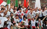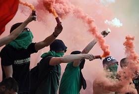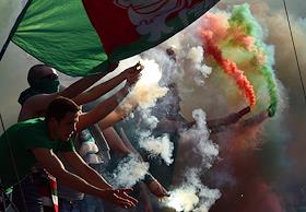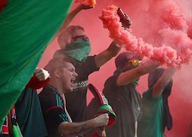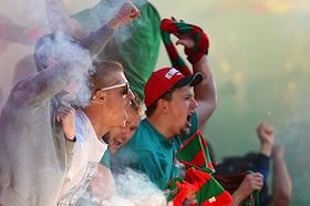 РОСГОССТРАХ Чемпионат России по футболу 2017/2018. 29-й тур. Матч между командами "Локомотив" (Москва) и "Зенит" (Санкт Петербург) прошел на стадионе "РЖД Арена". Болельщики команды "Локомотив" на трибуне во время матча.