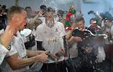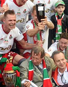 РОСГОССТРАХ Чемпионат России по футболу 2017/2018. 29-й тур. Матч между командами "Локомотив" (Москва) и "Зенит" (Санкт-Петербург) прошел на стадионе "РЖД Арена". Игроки команды "Локомотив" в раздевалке после победы в Чемпионате России по футболу.